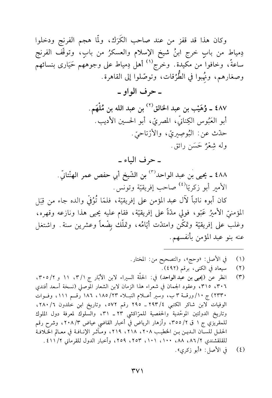 488- يحيى بن عبد الواحد [3] بن الشَّيْخ أَبِي حفص عُمَر الهنْتانيّ.