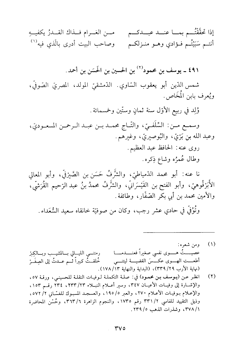 491- يوسف بْن محمود [2] بْن الْحُسَيْن بْن الْحَسَن بْن أَحْمَد.