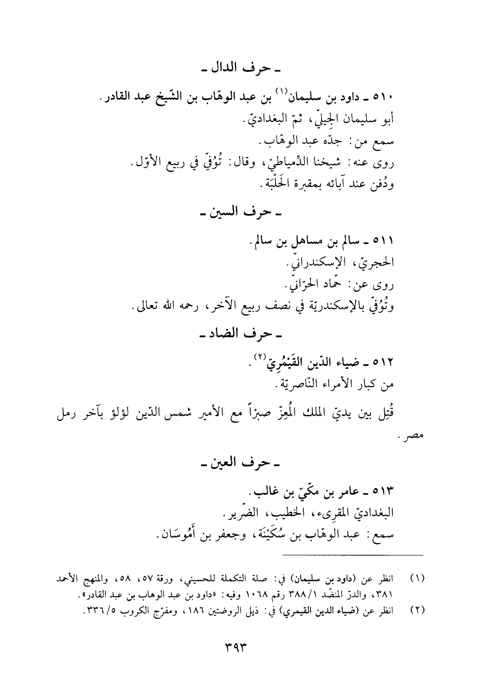 [1] انظر عن (داود بن سليمان) في: صلة التكملة للحسيني، ورقة 57، 58، والمنهج الأحمد 381، والدرّ المنضّد 1/ 388 رقم 1068 وفيه: «داود بن عبد الوهاب بن عبد القادر» .