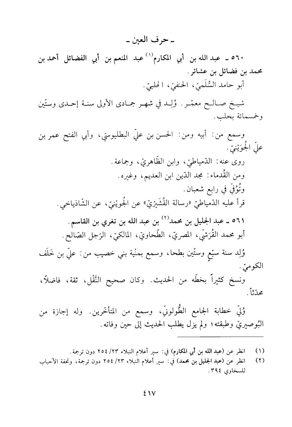 [1] انظر عن (عبد الله بن أبي المكارم) في: سير أعلام النبلاء 23/ 254 دون ترجمة.