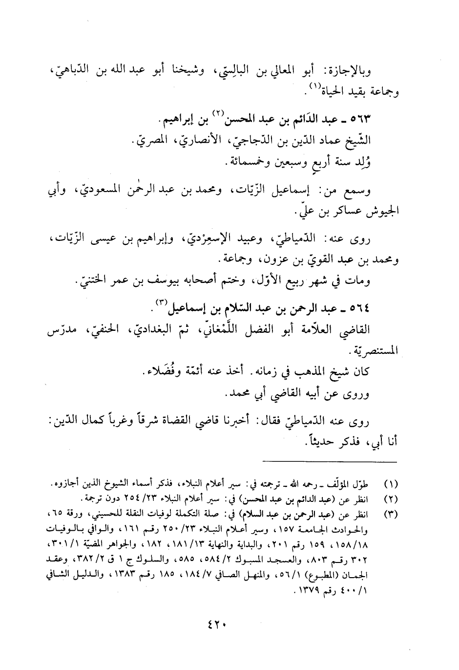 [2] انظر عن (عبد الدائم بن عبد المحسن) في: سير أعلام النبلاء 23/ 254 دون ترجمة.