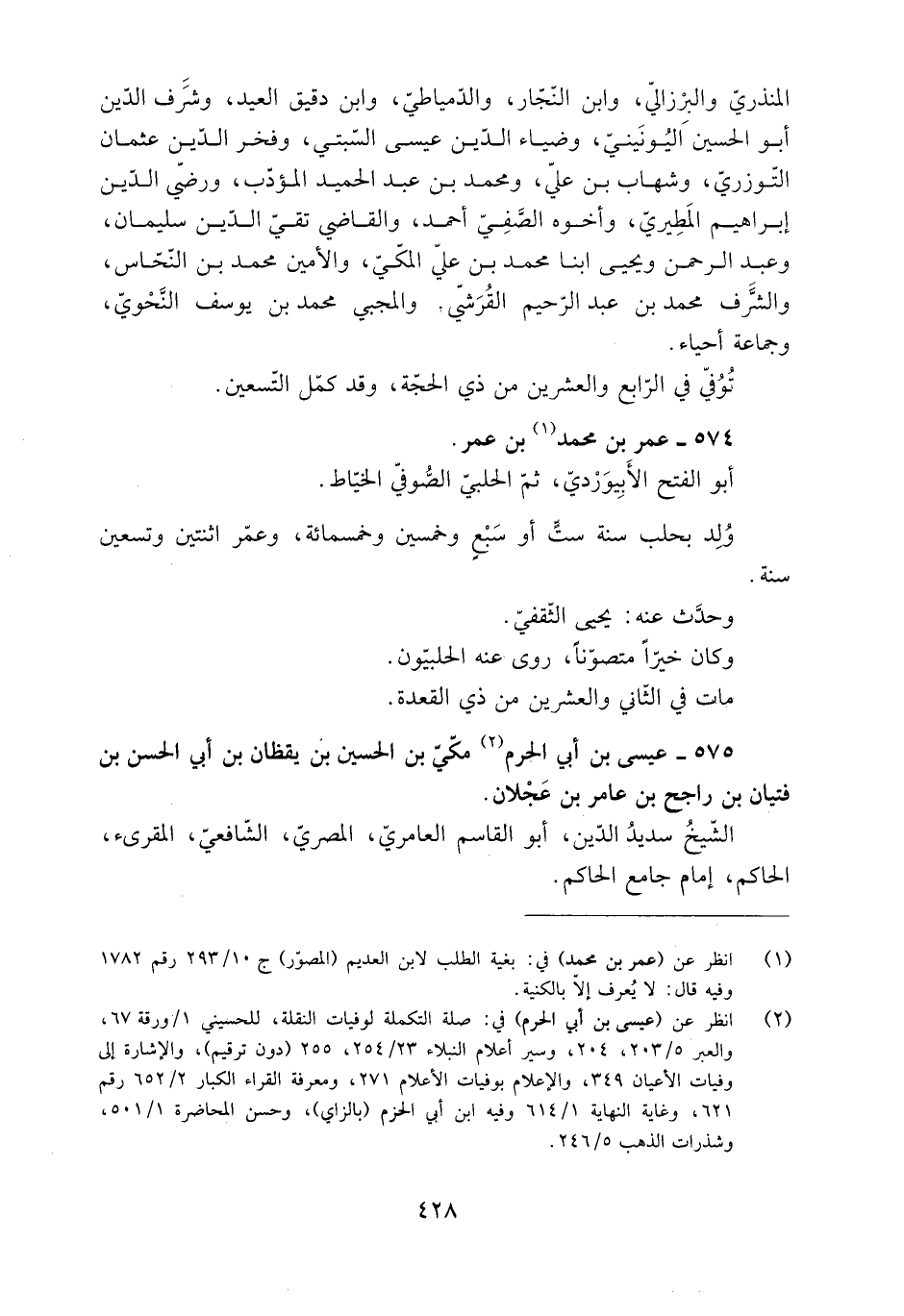 [1] انظر عن (عمر بن محمد) في: بغية الطلب لابن العديم (المصوّر) ج 10/ 293 رقم 1782 وفيه قال: لا يعرف إلّا بالكنية.