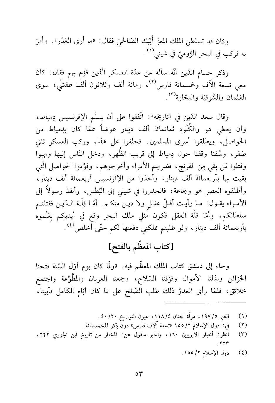 [3] انظر: أخبار الأيوبيين 160، والخبر منقول عن: المختار من تاريخ ابن الجزري 222، 223.