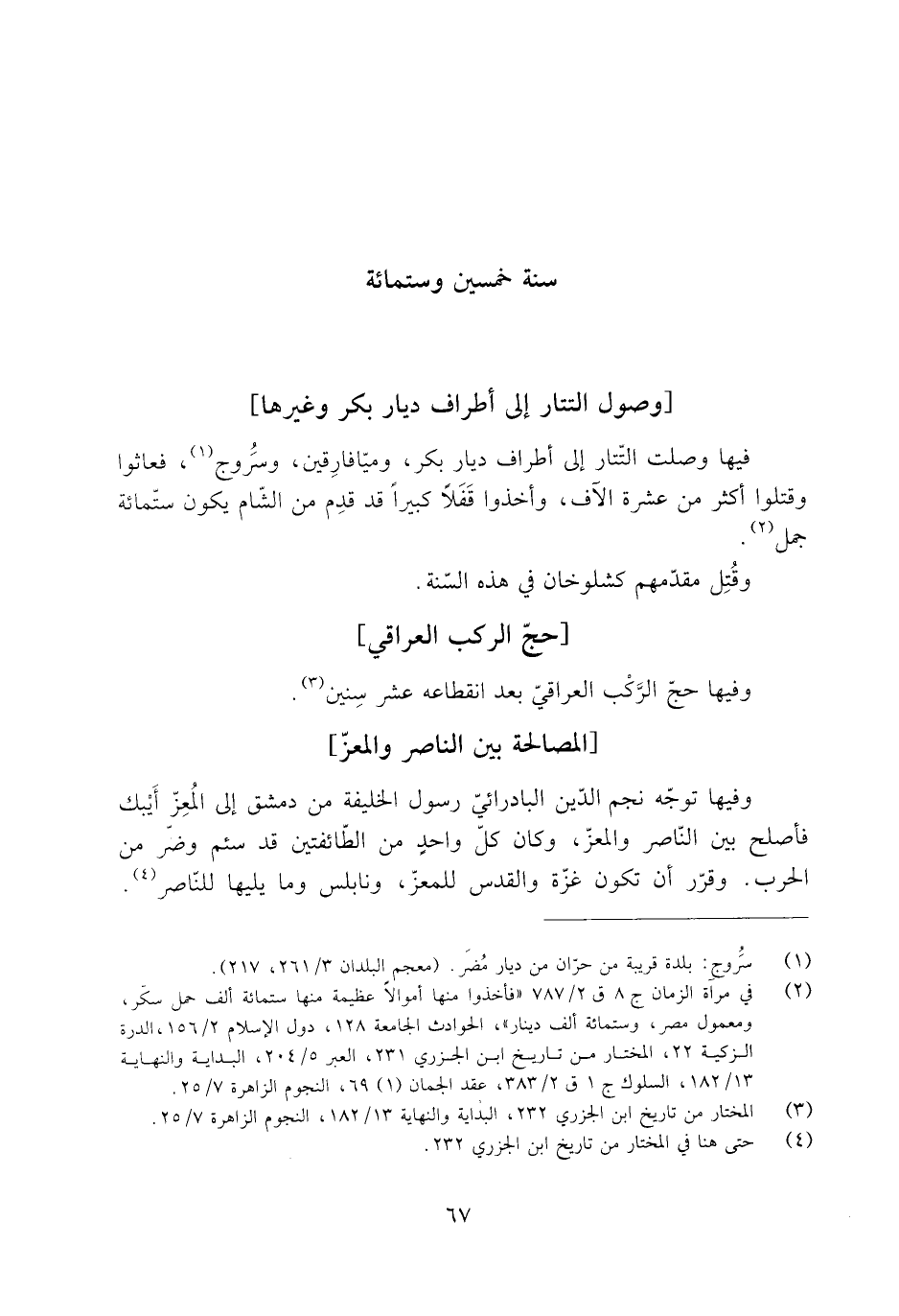 [3] المختار من تاريخ ابن الجزري 232، البداية والنهاية 13/ 182، النجوم الزاهرة 7/ 25.
