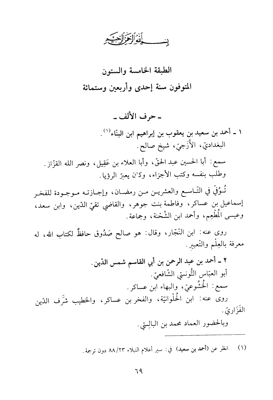 1- أَحْمَد بْن سَعِيد بْن يعقوب بن إبراهيم ابن البنّاء [1] .