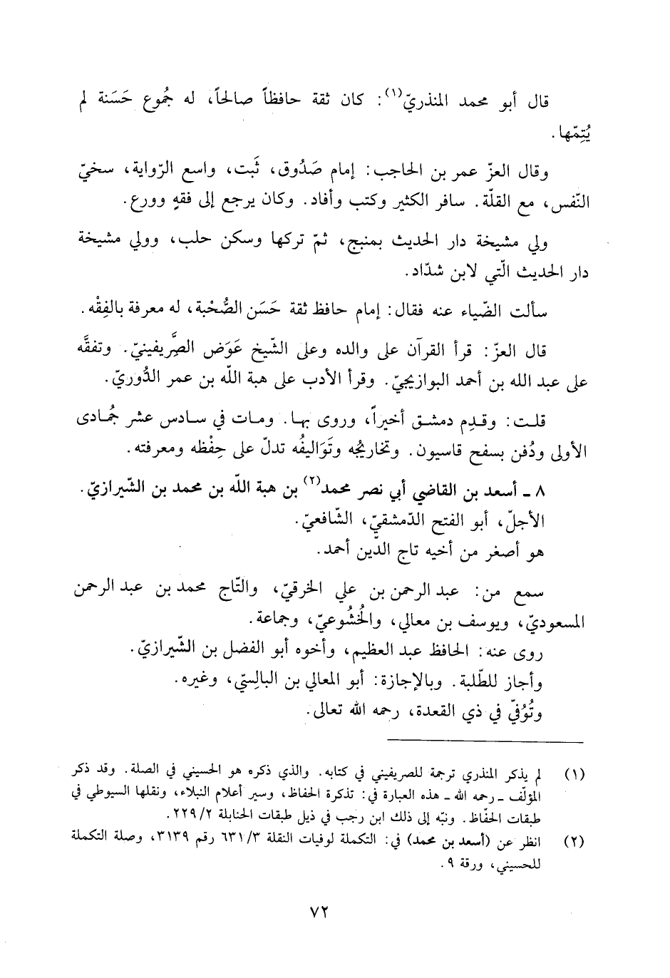 [2] انظر عن (أسعد بن محمد) في: التكملة لوفيات النقلة 3/ 631 رقم 3139، وصلة التكملة للحسيني، ورقة 9.
