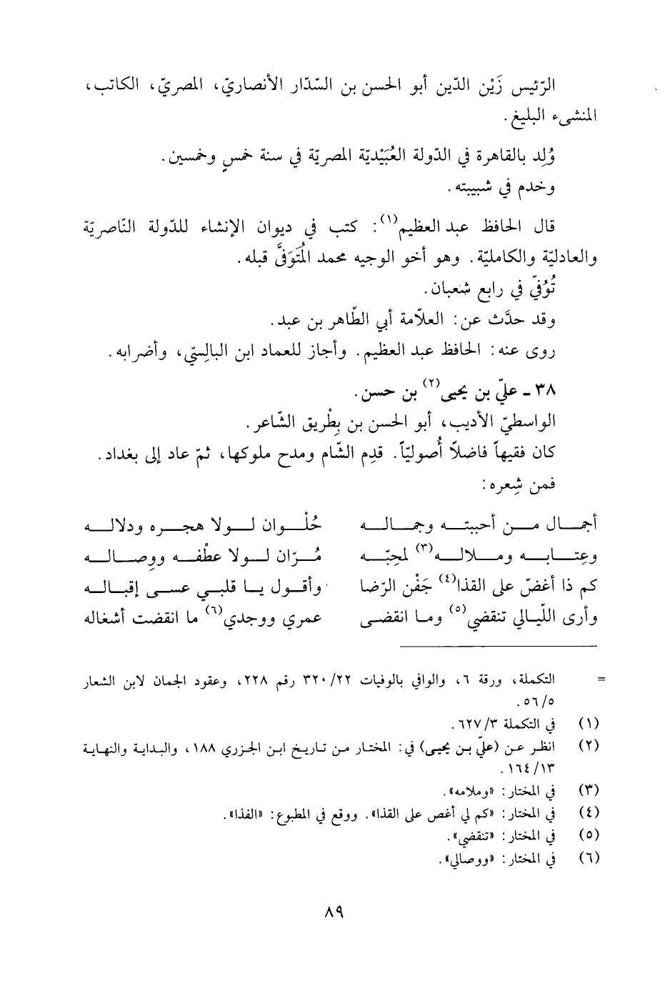 [ () ] التكملة، ورقة 6، والوافي بالوفيات 22/ 320 رقم 228، وعقود الجمان لابن الشعار 5/ 56.