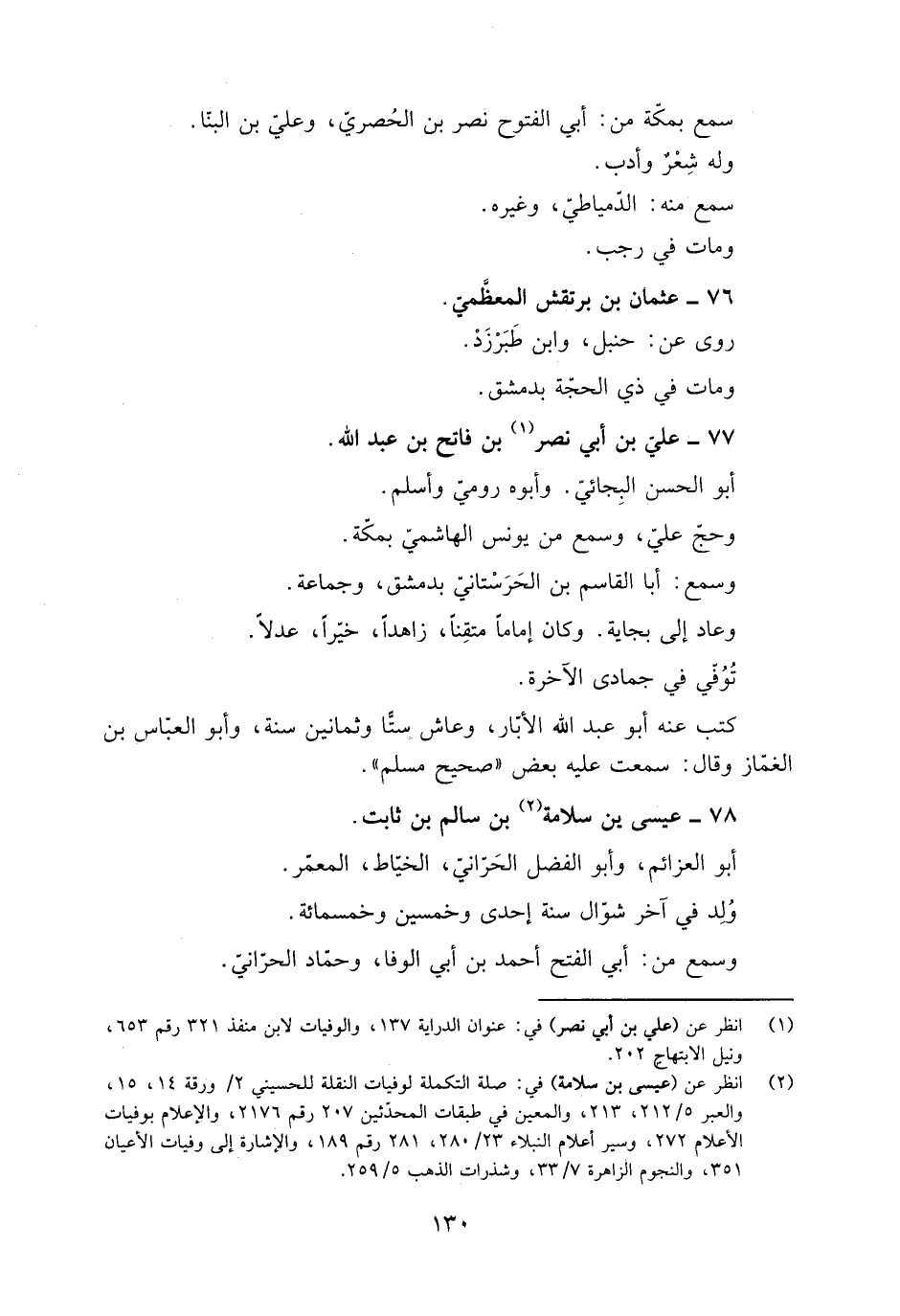 [2] انظر عن (عيسى بن سلامة) في: صلة التكملة لوفيات النقلة للحسيني 2/ ورقة 14، 15، والعبر 5/ 212، 213، والمعين في طبقات المحدّثين 207 رقم 2176، والإعلام بوفيات الأعلام 272، وسير أعلام النبلاء 23/ 280، 281 رقم 189، والإشارة إلى وفيات الأعيان 351، والنجوم الزاهرة 7/ 33، وشذرات الذهب 5/ 259.