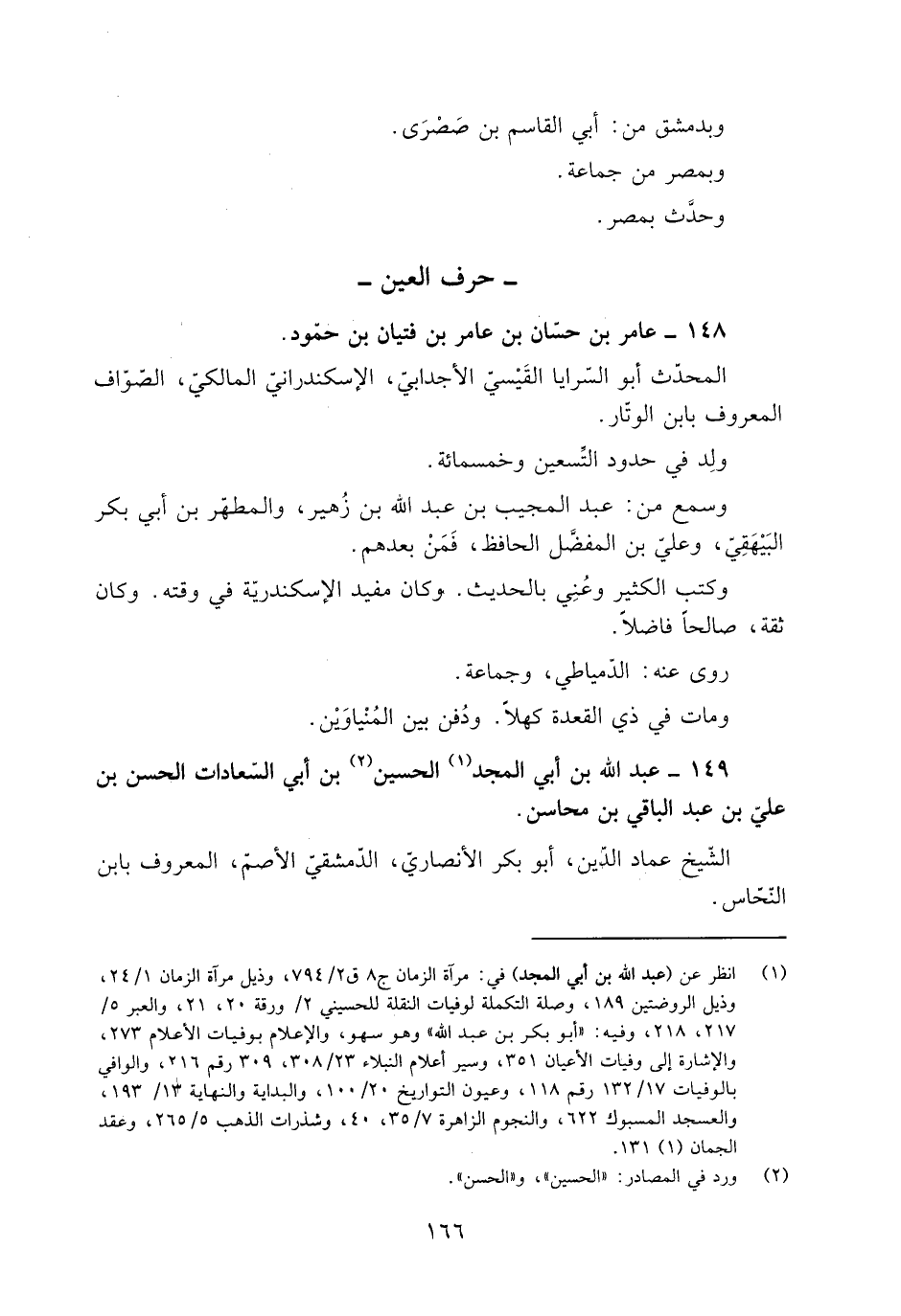 149- عَبْد الله بن أَبِي المجد [1] الْحُسَيْن [2] بن أَبِي السّعادات الحَسَن بن عليّ بن عَبْد الباقي بن محاسن.