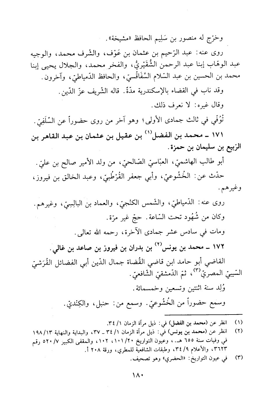 171- مُحَمَّد بن الفضل [1] بن عَقِيل بْن عُثمان بْن عَبْد القاهر بْن الرّبيع بن سُلَيْمَان بن حمزة.
