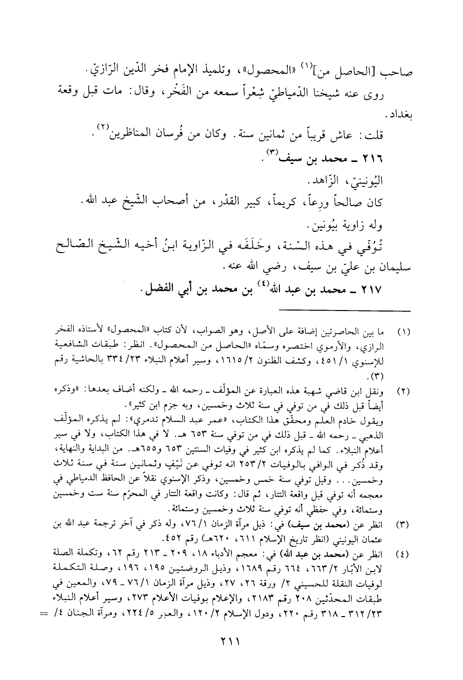 [3] انظر عن (محمد بن سيف) في: ذيل مرآة الزمان 1/ 76، وله ذكر في آخر ترجمة عبد الله بن عثمان اليونيني (انظر تاريخ الإسلام 611، 620 هـ) رقم 452.