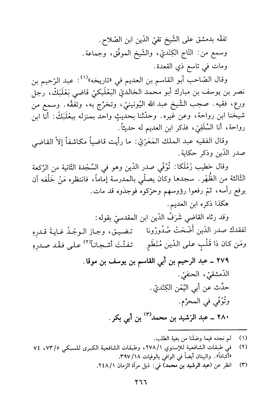 وقال الصّاحب أبو القاسم بْن العديم فِي «تاريخه» [1] : عَبْد الرّحيم بْن نصر بْن يوسف بْن مبارك أبو محمد الخالديّ البَعْلَبَكّيّ قاضي بَعْلَبَكّ، رَجُل ورع، فقيه. صحِب الشَّيْخ عَبْد الله اليونينيّ، وتخرّج بِهِ، وتفقّه. وسمع مِنْ شيخنا ابن رواحة، وعن غيره. وحَدَّثَنَا بحديثٍ واحد بمنزله ببعلبكّ: أَنَا ابن رواحة، أَنَا السلَفيّ، فذكر ابن العديم لَهُ حديثا.