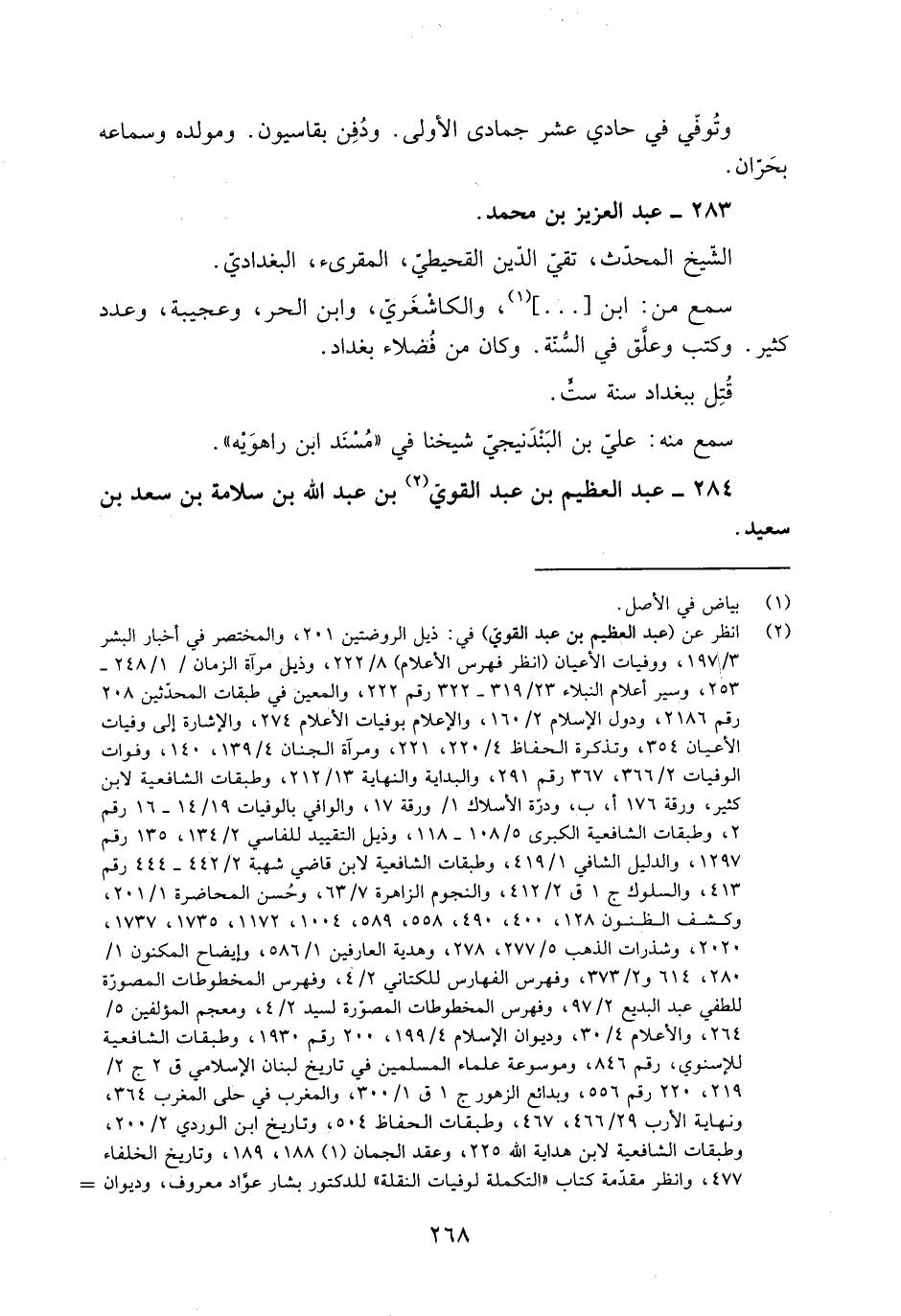 284- عَبْد العظيم بْن عَبْد القويّ [2] بْن عَبْد اللَّه بْن سلامة بن سعد بن سعيد.