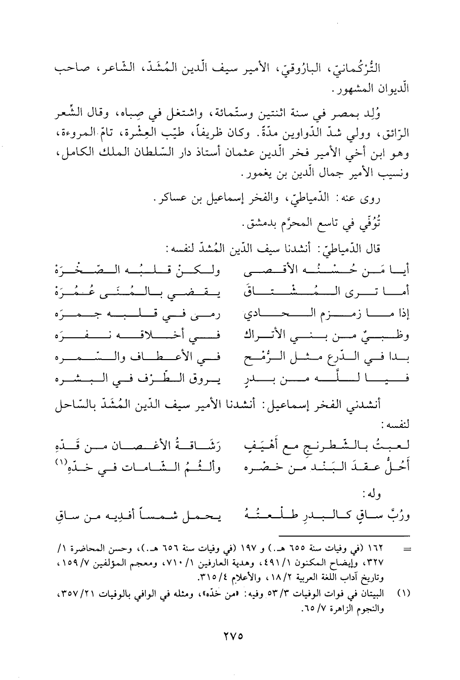 التّركمانيّ، البارُوقي، الأمير سيف الدّين المُشَد، الشّاعر، صاحب الدّيوان المشهور.