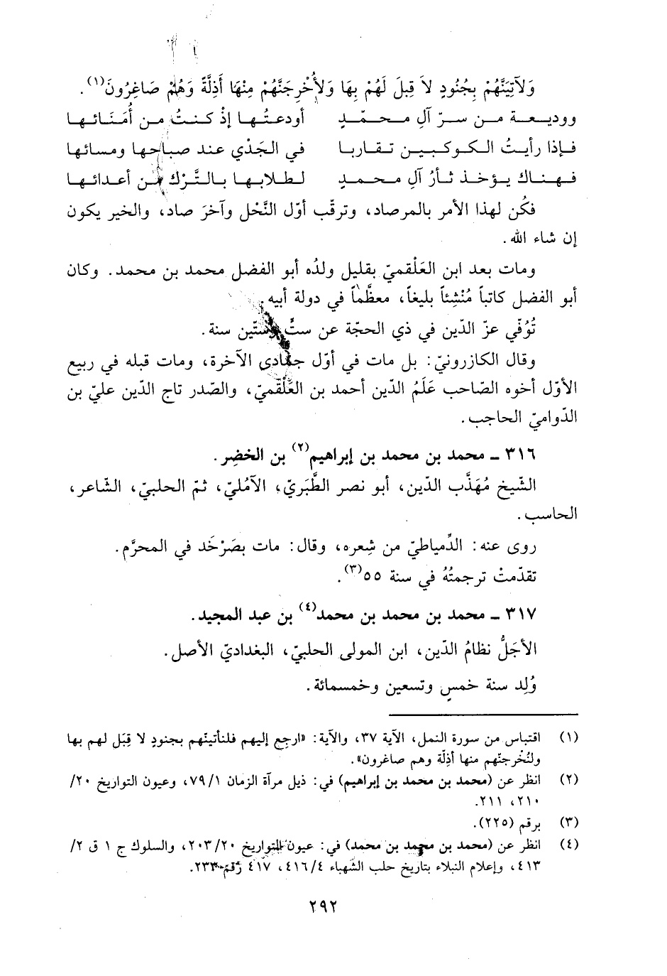 [4] انظر عن (محمد بن محمد بن محمد) في: عيون التواريخ 20/ 203، والسلوك ج 1 ق 2/ 413، وإعلام النبلاء بتاريخ حلب الشهباء 4/ 416، 417 رقم 233.