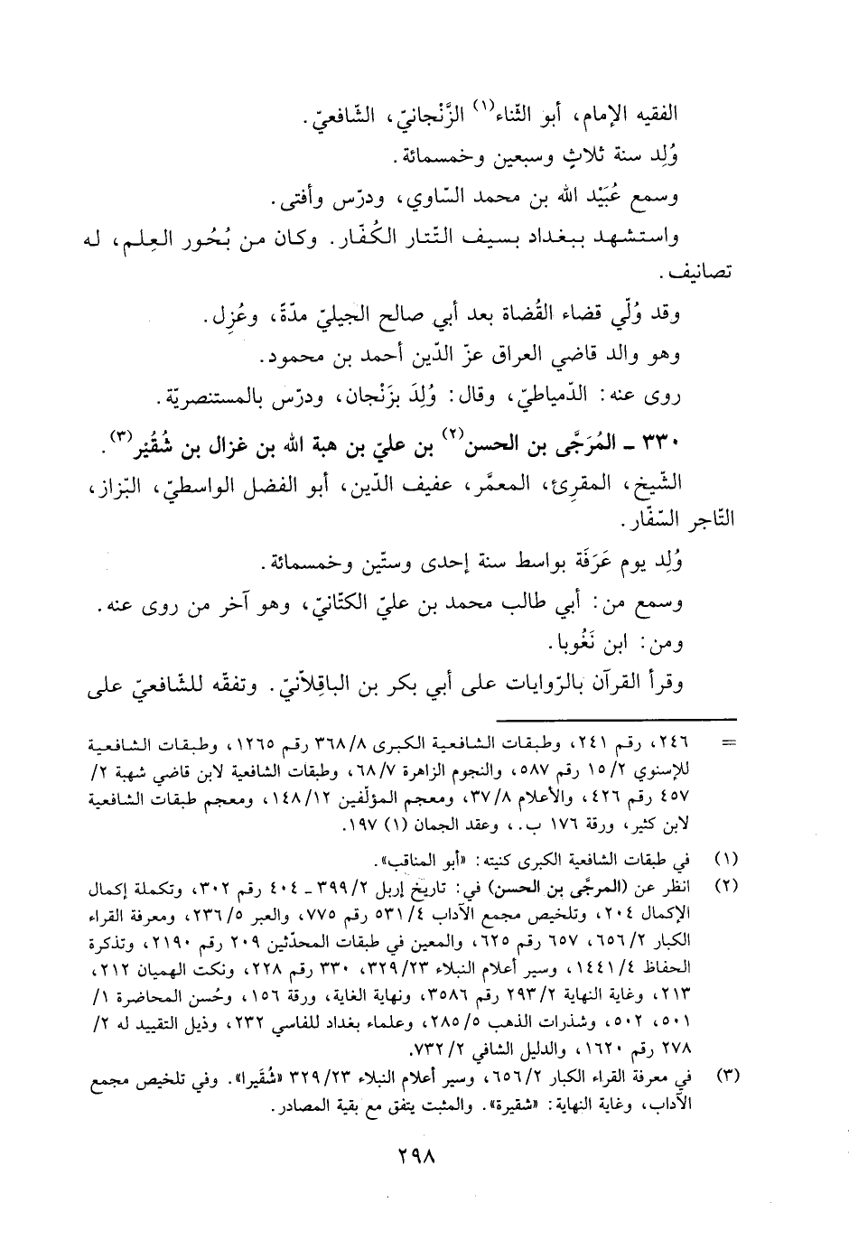 330- المرجّى بْن الحَسَن [2] بْن عليّ بن هبة الله بن غزال بن شُقُيْر [3] .