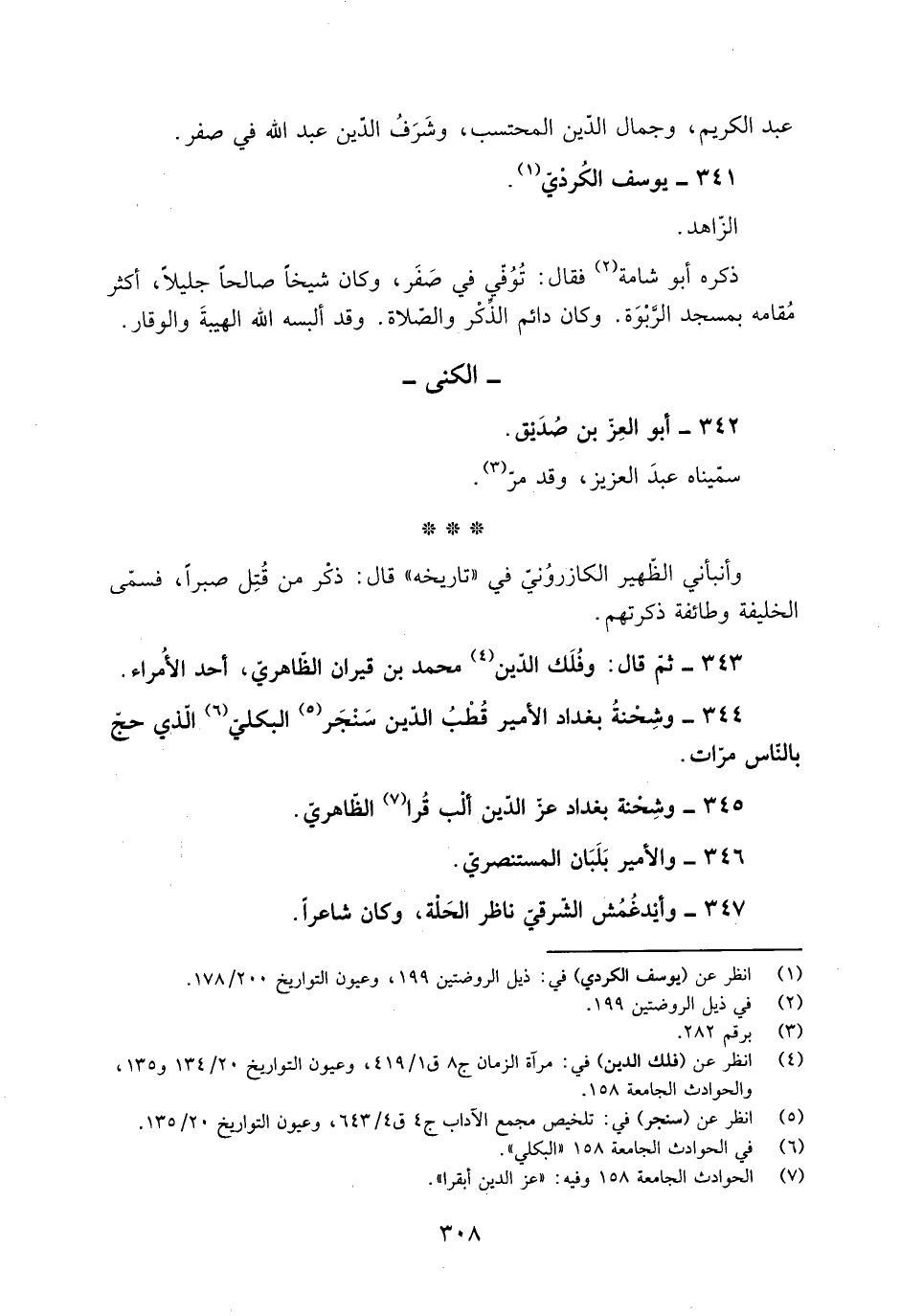 344- وشحنة بغداد الأمير قطب الدّين سَنْجَر [5] البكليّ [6] الَّذِي حجّ بالنّاس مرّات.