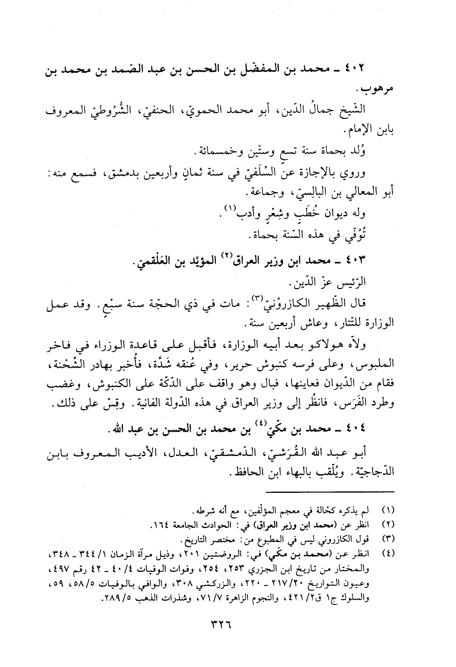 403- محمد ابن وزير العراق [2] المؤيّد بن العَلْقميّ.