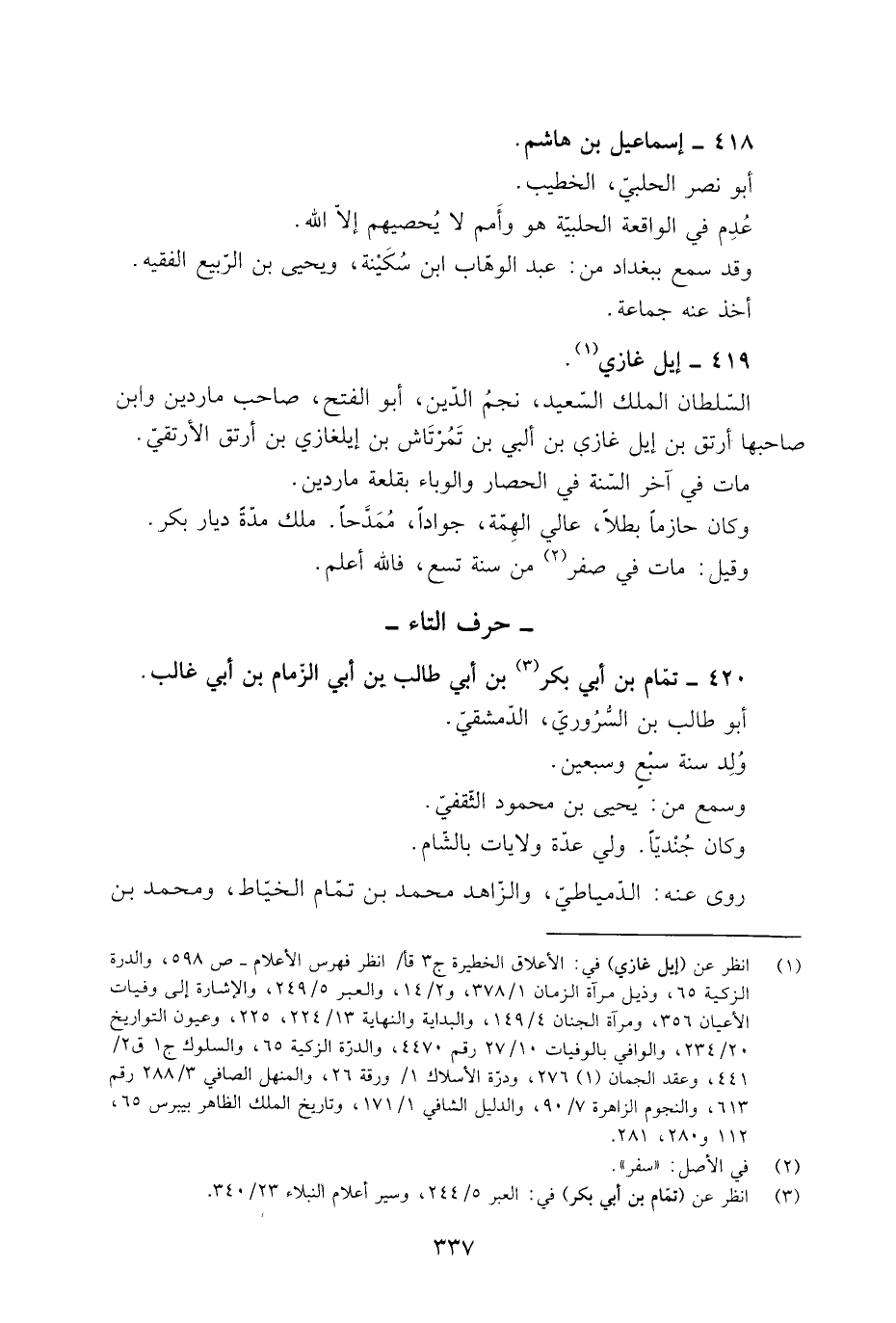[1] انظر عن (إيل غازي) في: الأعلاق الخطيرة ج 3 قا/ انظر فهرس الأعلام- ص 598، والدرة الزكية 65، وذيل مرآة الزمان 1/ 378، و 2/ 14، والعبر 5/ 249، والإشارة إلى وفيات الأعيان 356، ومرآة الجنان 4/ 149، والبداية والنهاية 13/ 224، 225، وعيون التواريخ 20/ 234، والوافي بالوفيات 10/ 27 رقم 4470، والدرّة الزكية 65، والسلوك ج 1 ق 2/ 441، وعقد الجمان (1) 276، ودرّة الأسلاك 1/ ورقة 26، والمنهل الصافي 3/ 288 رقم 613، والنجوم الزاهرة 7/ 90، والدليل الشافي 1/ 171، وتاريخ الملك الظاهر بيبرس 65، 112 و 280، 281.