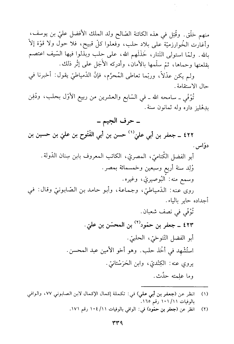 423- جعفر بْن حمّود [2] بْن المحسّن بْن عليّ.