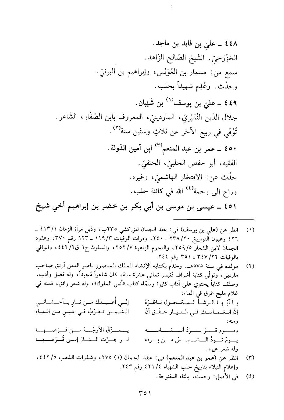 [3] انظر عن (عمر بن عبد المنعم) في: عقد الجمان (1) 275، وشذرات الذهب 5/ 442، وإعلام النبلاء بتاريخ حلب الشهباء 4/ 421 رقم 243.