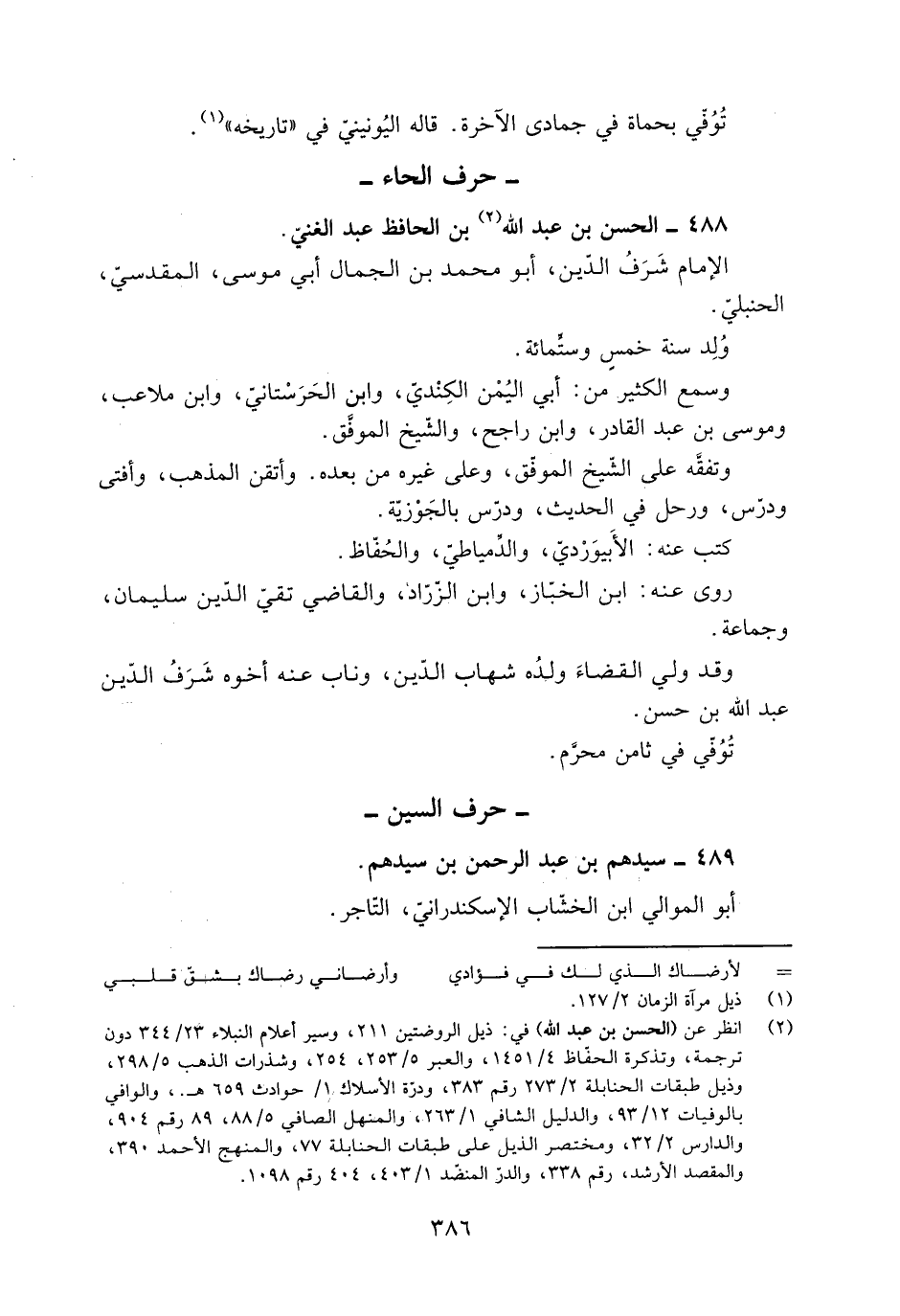 488- الحَسَن بْن عَبْد اللَّه [2] بْن الحافظ عَبْد الغنيّ.