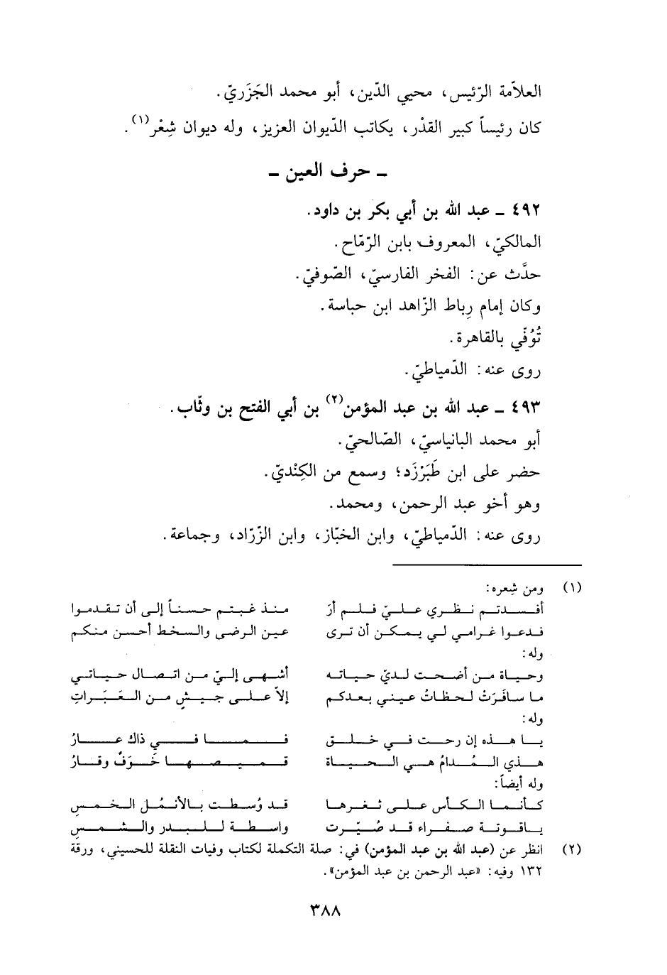 493- عَبْد الله بْن عَبْد المؤمن [2] بْن أبي الفتح بْن وثّاب.