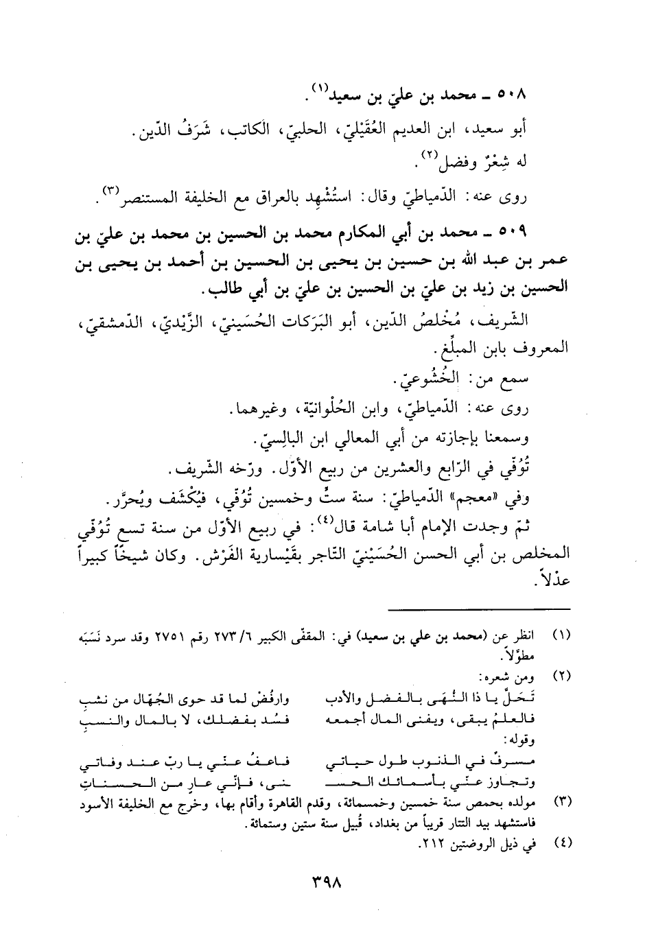 509- محمد بْن أبي المكارم محمد بْن الحُسَيْن بْن محمد بْن عليّ بْن عُمَر بْن عَبْد الله بْن حسين بْن يحيى بْن الحُسَيْن بْن أحمد بْن يحيى بْن الْحُسَيْنُ بْنُ زَيْدِ بْنِ عَلِيِّ بْنِ الْحُسَيْنِ بْنِ عَلِيِّ بْنِ أَبِي طَالِب.