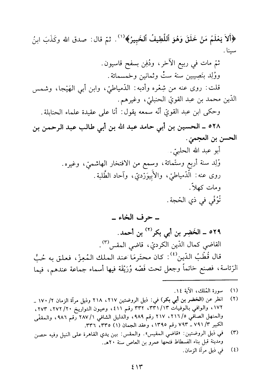 528- الحُسَيْن بْن أبي حامد عَبْد الله بْن أبي طَالِب عَبْد الرَّحْمَن بْن الحَسَن بْن العَجَميّ.