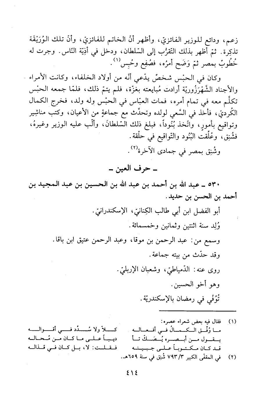 [2] في المقفى الكبير 3/ 793 شنق في سنة 659 هـ.