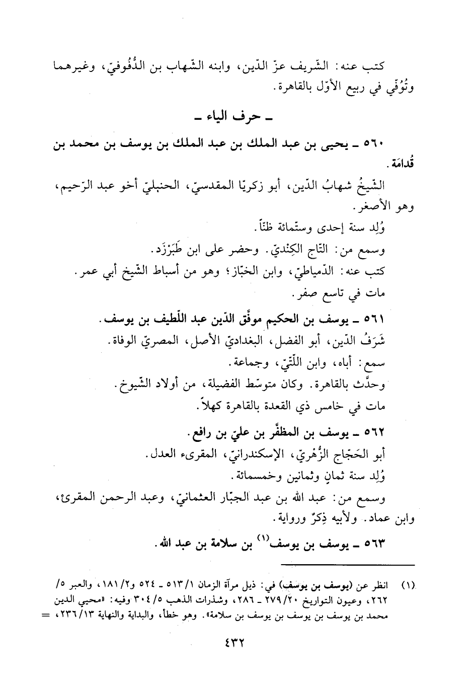 560- يحيى بْن عبدُ المُلْك بْن عَبْد الملك بْن يوسُف بْن مُحَمَّد بْن قُدامَة.