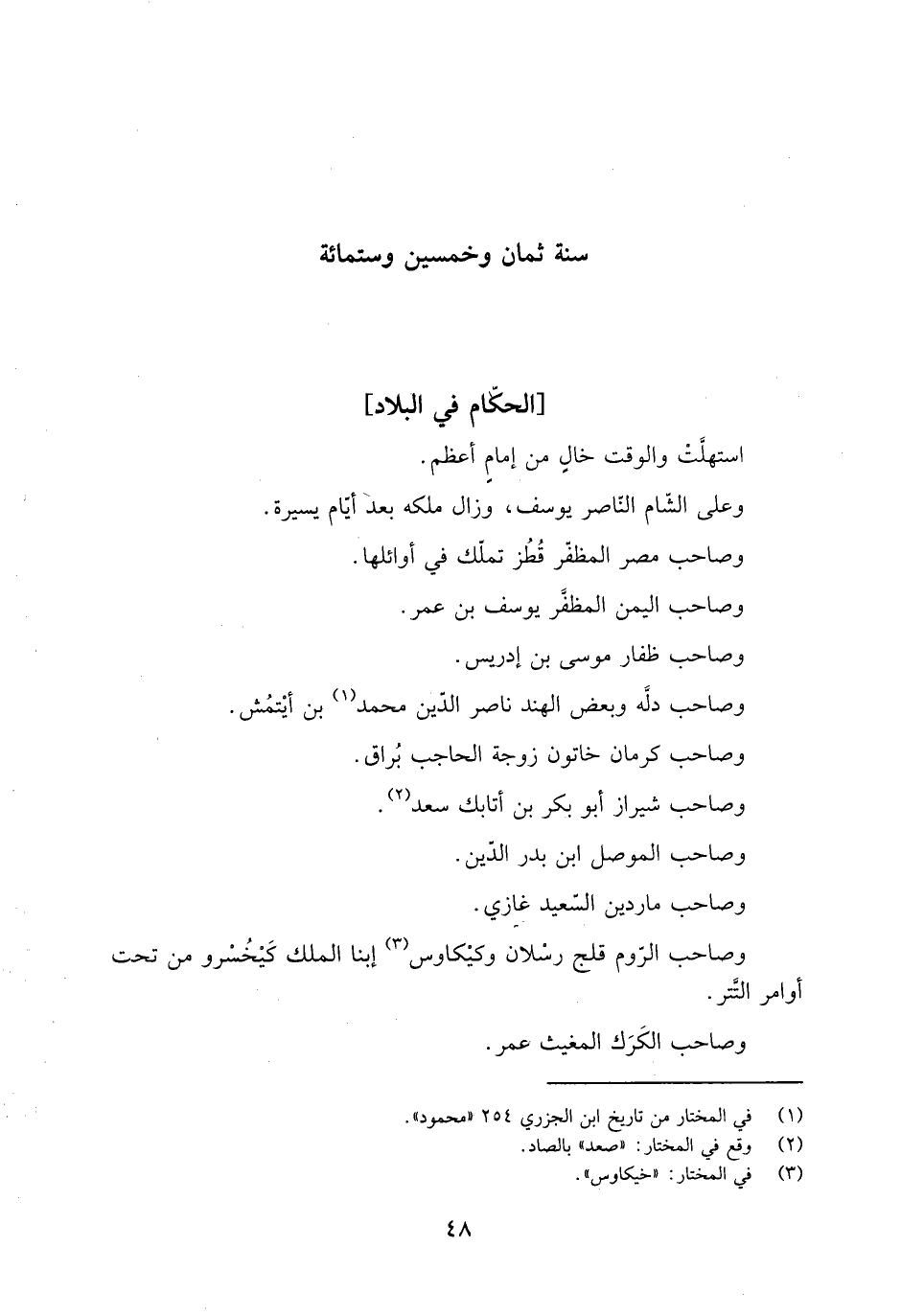 وصاحب الرّوم قلج رسلان وكيكاوس [3] ابنا الملك كَيْخُسْرو من تحت أوامر التّتر.