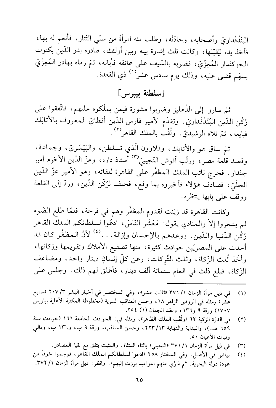 [1] في ذيل مرآة الزمان 1/ 371 «ثالث عشر» ، وفي المختصر في أخبار البشر 3/ 207 «سابع عشر» ومثله في الروض الزاهر 68، وحسن المناقب السرية (مخطوطة المكتبة الأهلية بباريس 1707) ورقة 9 و 136، وعقد الجمان (1) 254.
