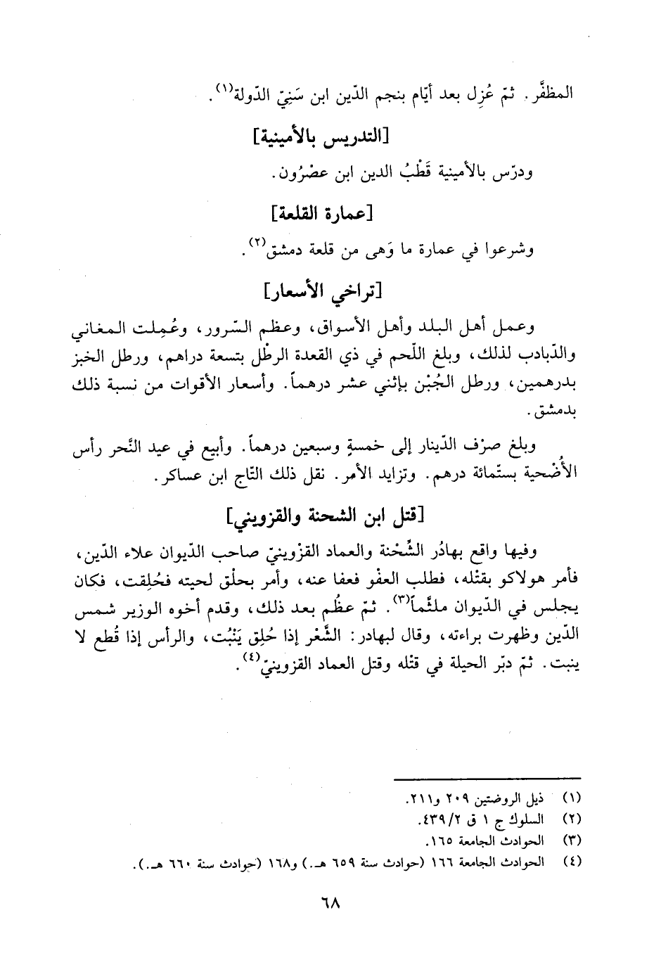 [4] الحوادث الجامعة 166 (حوادث سنة 659 هـ.) و 168 (حوادث سنة 660 هـ.) .