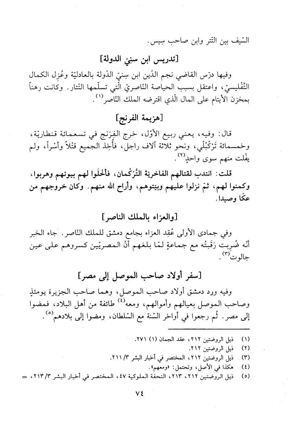 [5] ذيل الروضتين 212، 213، التحفة الملوكية 47، المختصر في أخبار البشر 3/ 213،