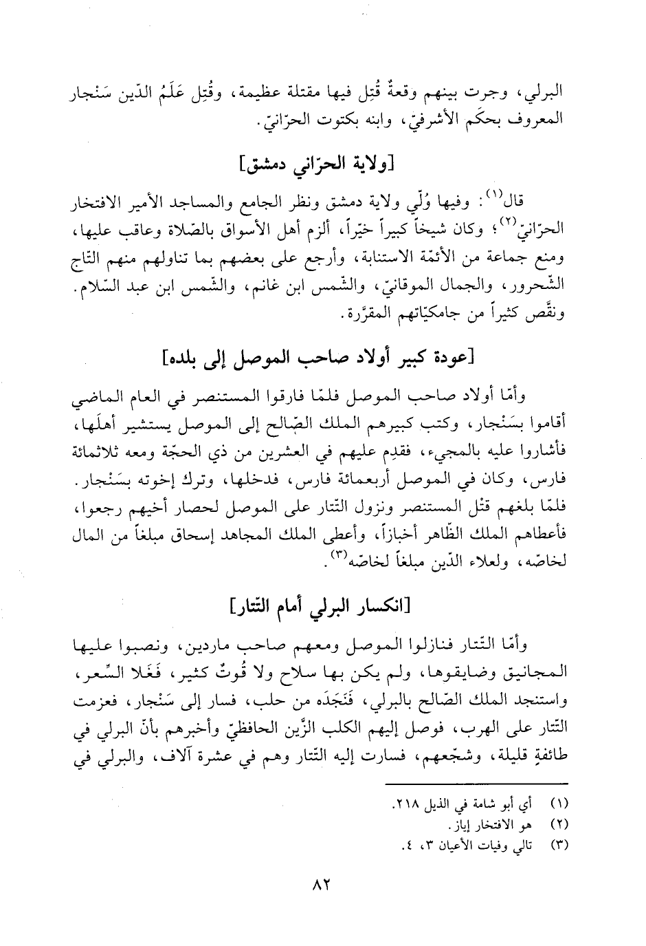 وأمّا أولاد صاحب الموصل فلمّا فارقوا المستنصر فِي العام الماضي أقاموا بسَنْجار، وكتب كبيرهم الملك الصّالح إلى الموصل يستشير أهلَها، فأشاروا عليه بالمجيء، فقدِم عليهم فِي العشرين من ذي الحجّة ومعه ثلاثمائة فارس، وكان في الموصل أربعمائة فارس، فدخلها، وترك إخوته بسَنْجار.