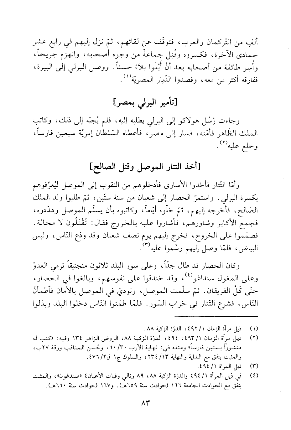 [4] في ذيل المرآة 1/ 494 والدرّة الزكية 88، 89 وتالي وفيات الأعيان 4 «صندغون» ، والمثبت يتفق مع الحوادث الجامعة 166 (حوادث سنة 659 هـ) . و 167 (حوادث سنة 660 هـ) .