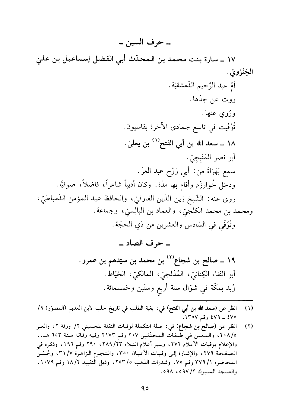 17- سارة بِنْت مُحَمَّد بن المحدّث أبي الفضل إِسْمَاعِيل بن عليّ الْجَنْزَوي.