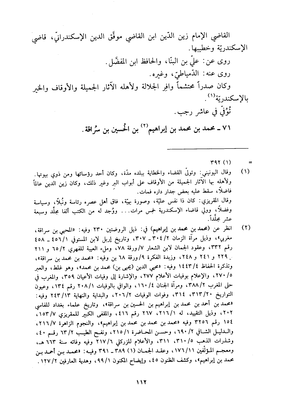 [2] انظر عن (محمد بن محمد بن إبراهيم) في: ذيل الروضتين 230 وفيه: «المحيي بن سراقة، مغربي» ، وذيل مرآة الزمان 2/ 304- 307، وتاريخ إربل لابن المستوفي 1/ 456- 458 رقم 332، وعقود الجمان لابن الشعار 7/ ورقة 78، وملء العيبة للفهري 2/ 65 و 211 و 229 و 241 و 248، وزبدة الفكرة 9/ ورقة 68 بن وفيه: «محمد بن محمد بن سراقة» ، وتذكرة الحفاظ 4/ 1443 وفيه: «محيي الدين (يحيى بن) محمد بن محمد» ، وهو غلط، والعبر 5/ 270، والإعلام بوفيات الأعلام 277، والإشارة إلى وفيات الأعيان 359، والمغرب في حلى المغرب 2/ 388، ومرآة الجنان 4/ 160، والوافي بالوفيات 1/ 208 رقم 134، وعيون التواريخ 20/ 313، 314، وفوات الوفيات 2/ 206، والبداية والنهاية 13/ 243 وفيه: