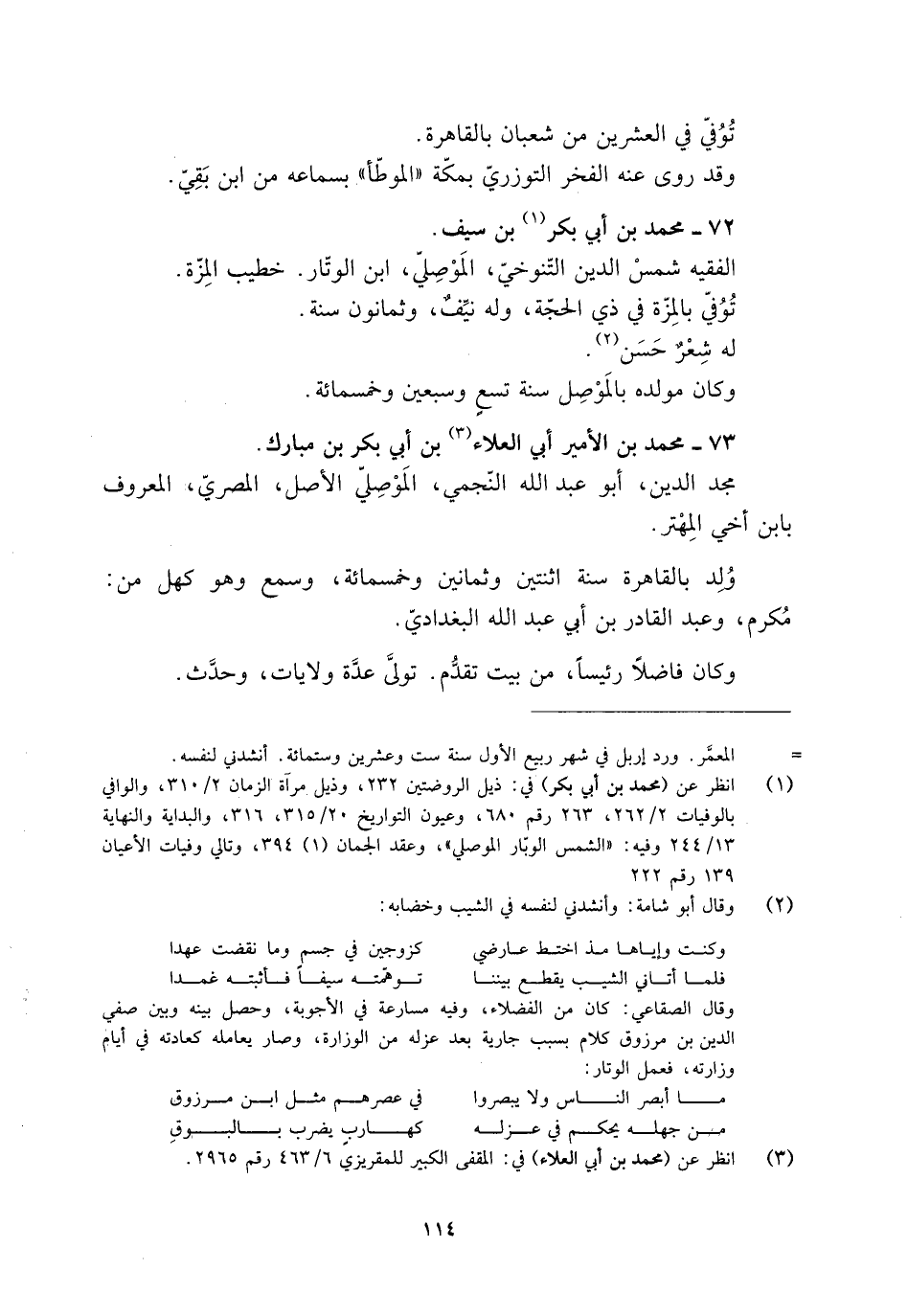 [3] انظر عن (محمد بن أبي العلاء) في: المقفى الكبير للمقريزي 6/ 463 رقم 2965.