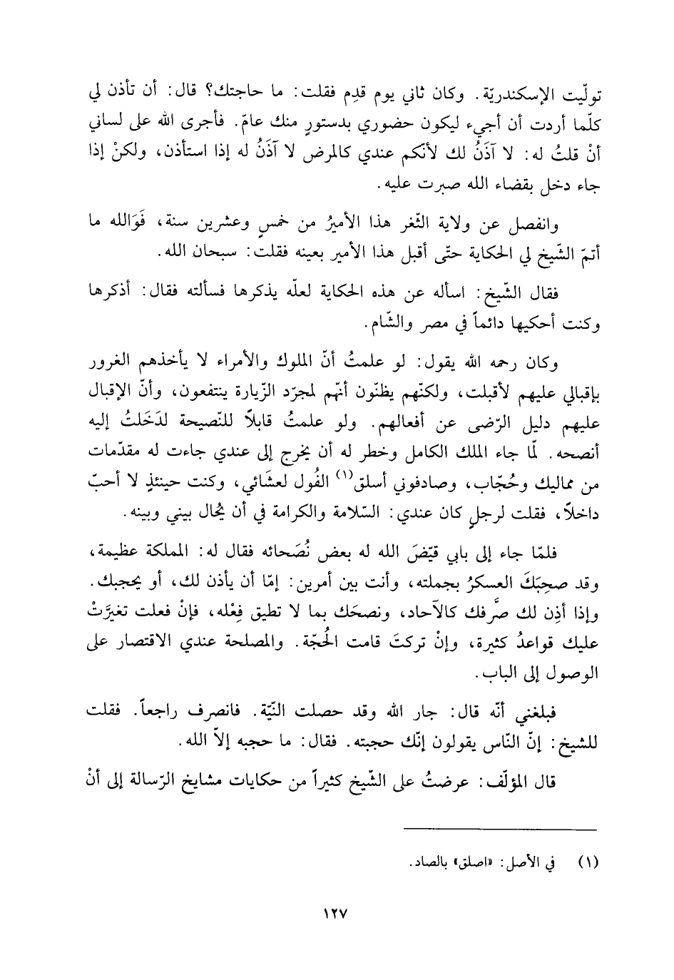 قال المؤلّف: عرضتُ على الشّيخ كثيرا من حكايات مشايخ الرّسالة إلى أن