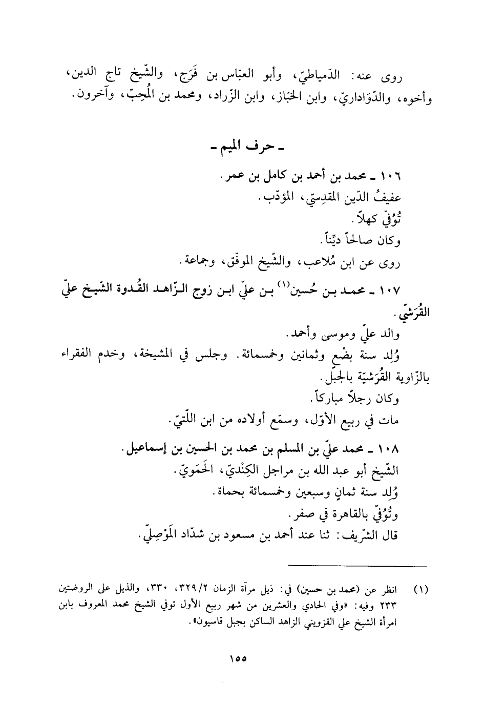 107- محمد بن حسين [1] بن عليّ ابن زوج الزّاهد القدوة الشّيخ عليّ القرشيّ.