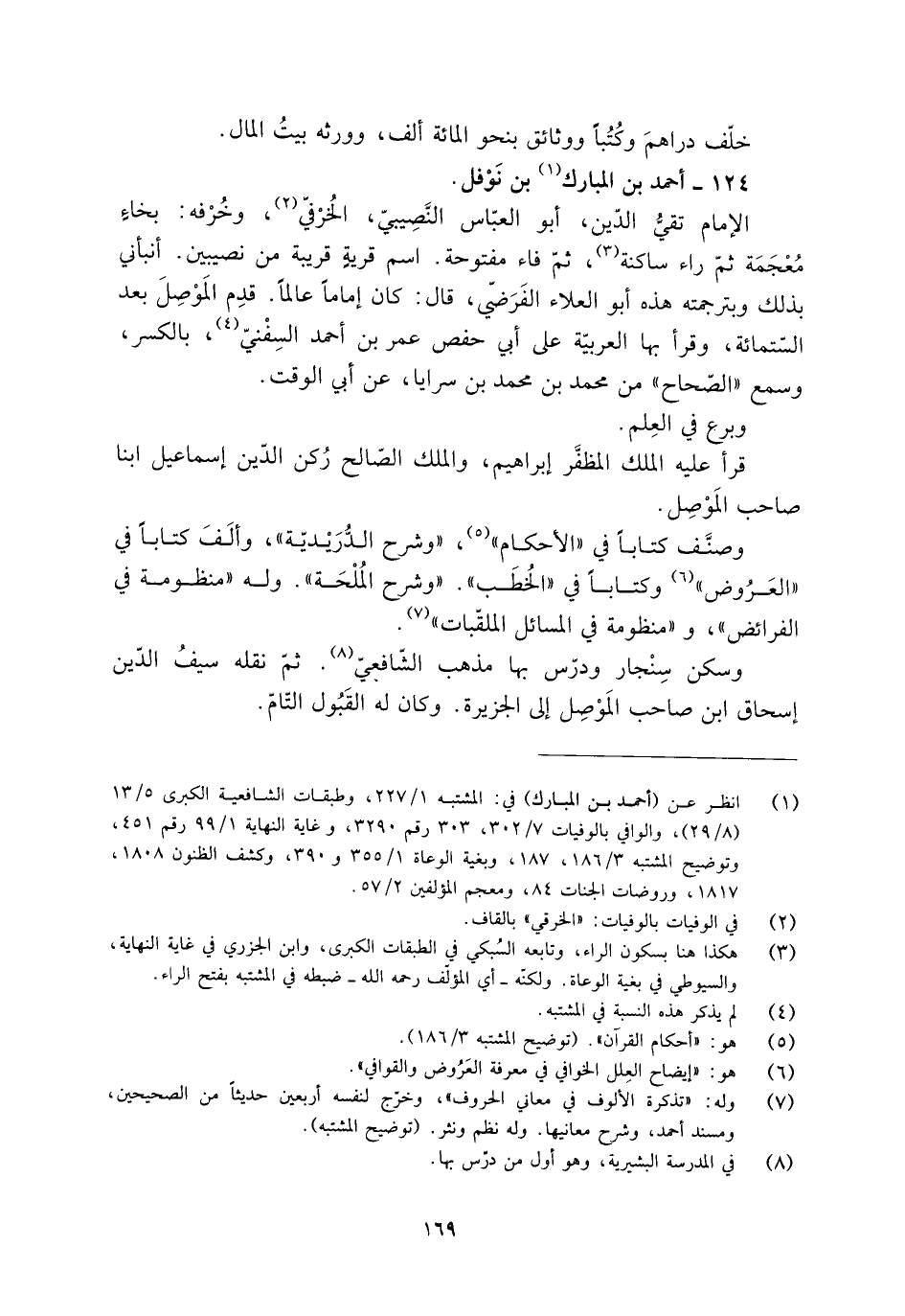 124- أحمد بن المبارك [1] بن نَوْفَل.
