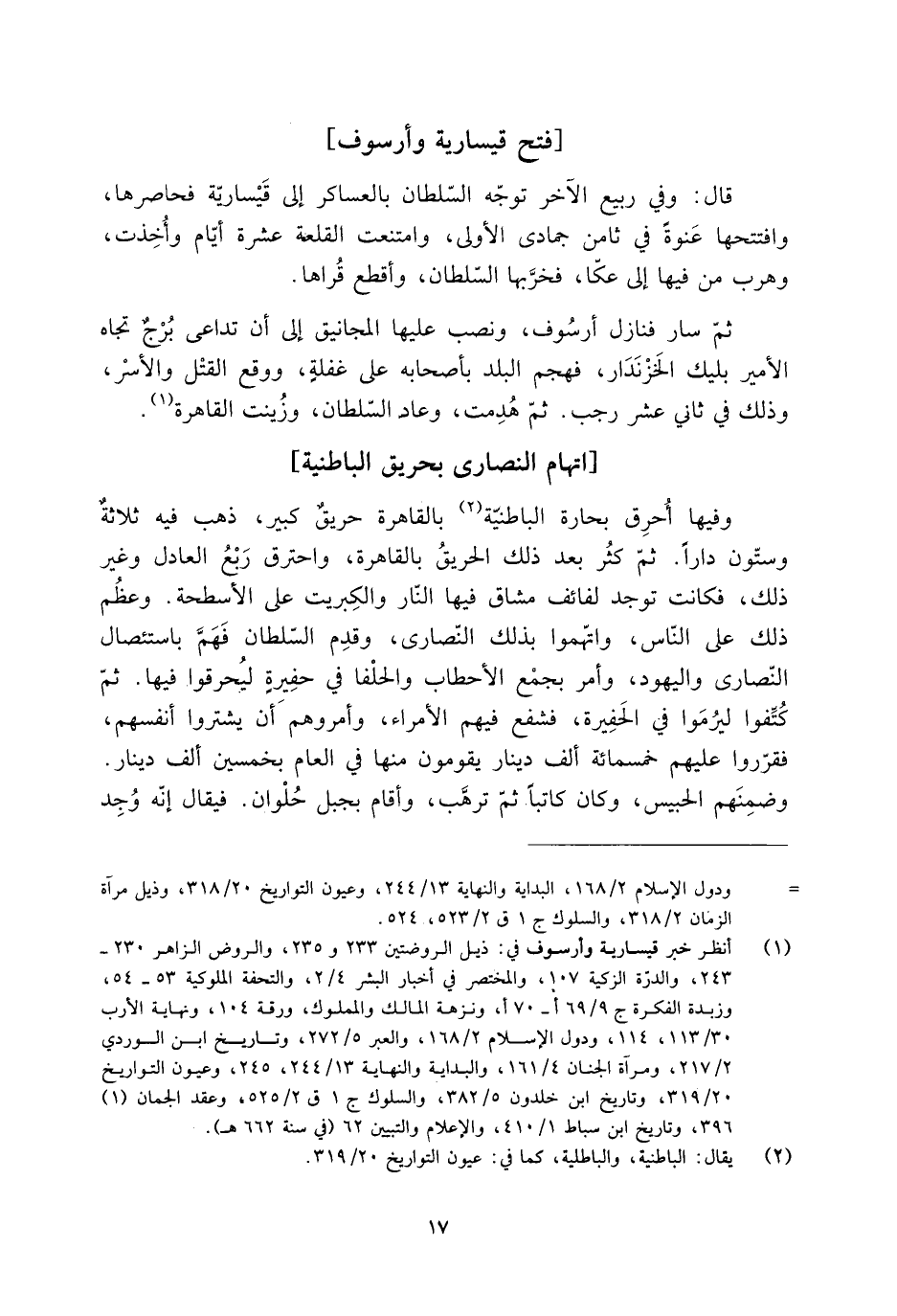 [ () ] ودول الإسلام 2/ 168، البداية والنهاية 13/ 244، وعيون التواريخ 20/ 318، وذيل مرآة الزمان 2/ 318، والسلوك ج 1 ق 2/ 523، 524.