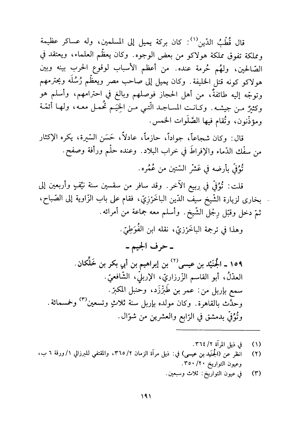 [2] انظر عن (الجنيد بن عيسى) في: ذيل مرآة الزمان 2/ 365، والمقتفي للبرزالي 1/ ورقة 6 ب، وعيون التواريخ 20/ 350.
