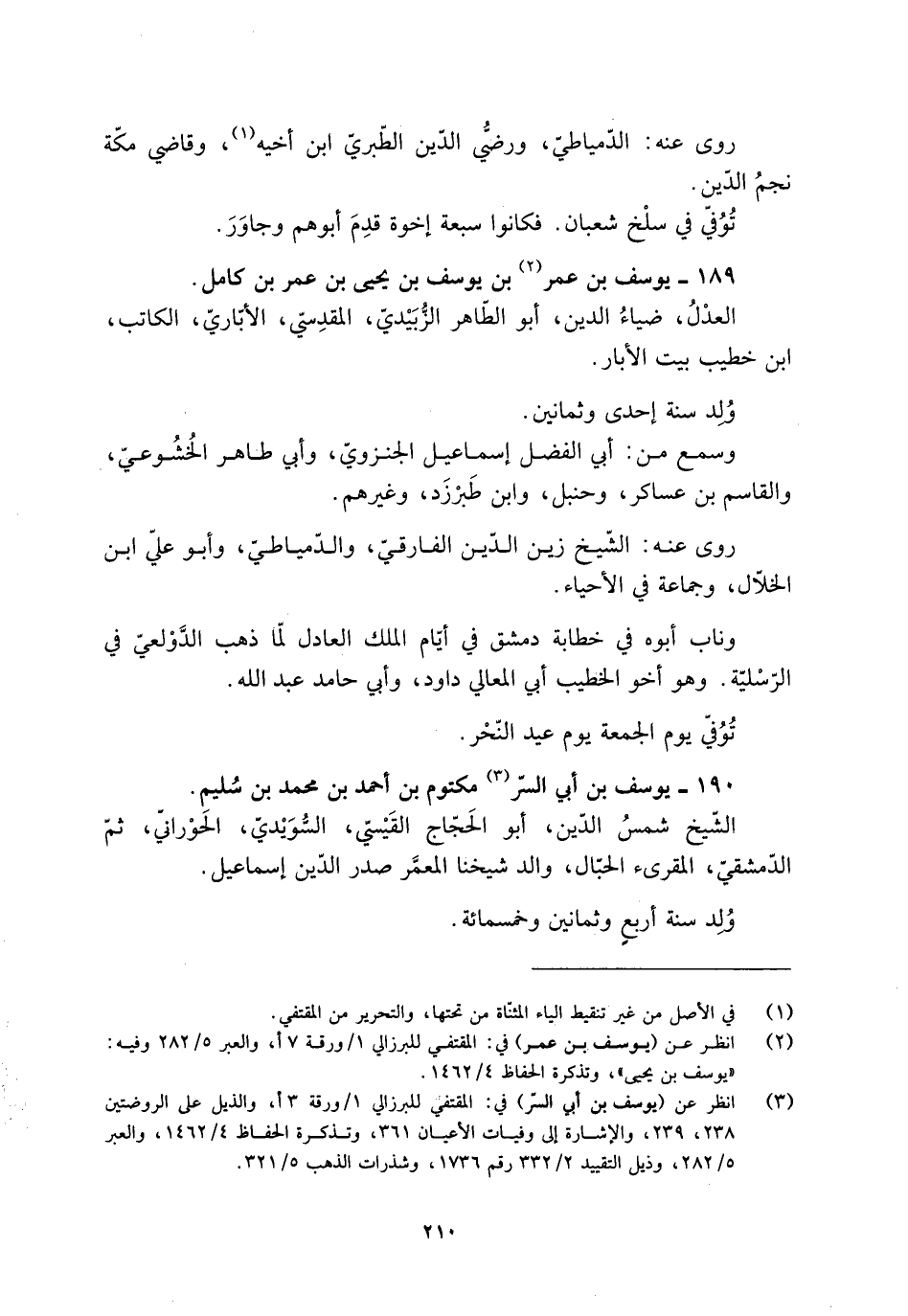 [2] انظر عن (يوسف بن عمر) في: المقتفي للبرزالي 1/ ورقة 7 أ، والعبر 5/ 282 وفيه: