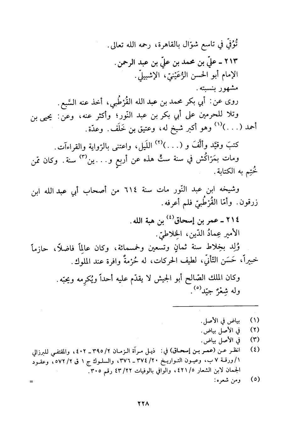 وشيخه ابن عبد النّور مات سنة 614 من أصحاب أبي عبد الله ابن زرقون. وأمّا القُرْطُبيّ فلم أعرفه.