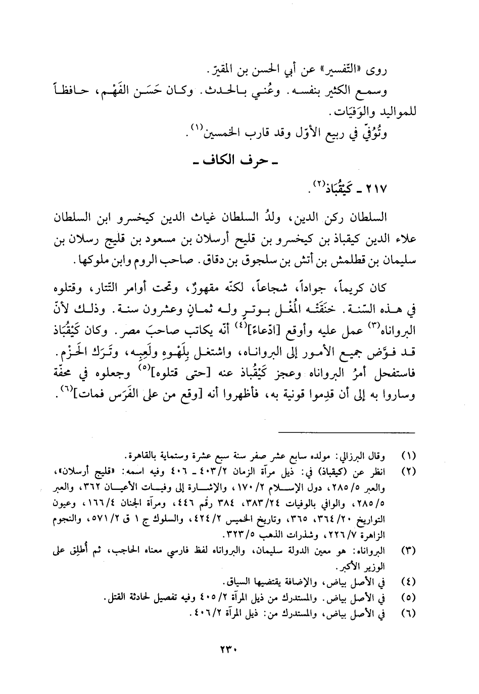 [2] انظر عن (كيقباذ) في: ذيل مرآة الزمان 2/ 403- 406 وفيه اسمه: «قليج أرسلان» ، والعبر 5/ 285، دول الإسلام 2/ 170، والإشارة إلى وفيات الأعيان 362، والعبر 5/ 285، والوافي بالوفيات 24/ 383، 384 رقم 446، ومرآة الجنان 4/ 166، وعيون التواريخ 20/ 364، 365، وتاريخ الخميس 2/ 424، والسلوك ج 1 ق 2/ 571، والنجوم الزاهرة 7/ 226، وشذرات الذهب 5/ 323.