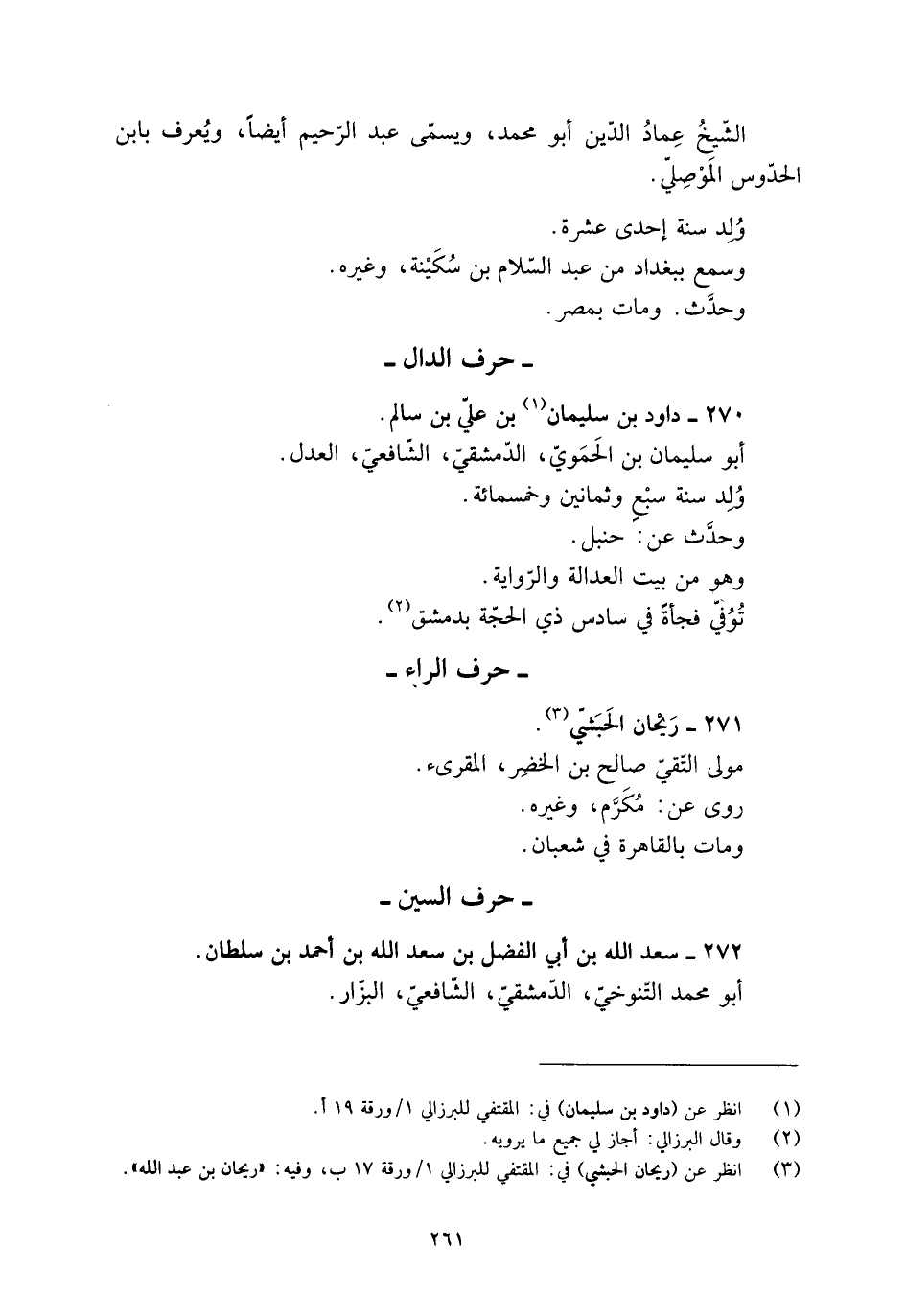 [1] انظر عن (داود بن سليمان) في: المقتفي للبرزالي 1/ ورقة 19 أ.