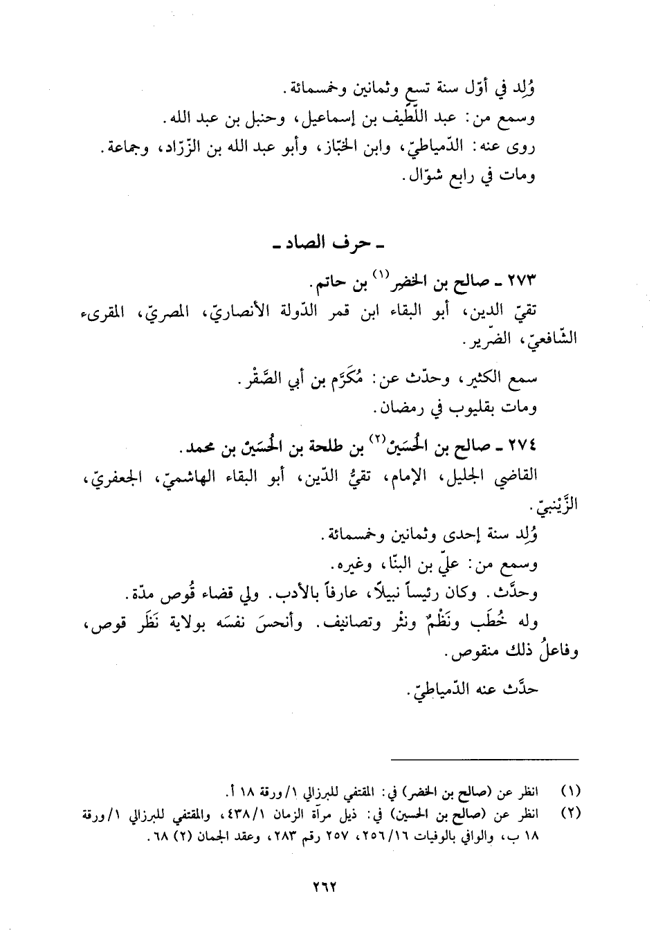 [1] انظر عن (صالح بن الخضر) في: المقتفي للبرزالي 1/ ورقة 18 أ.